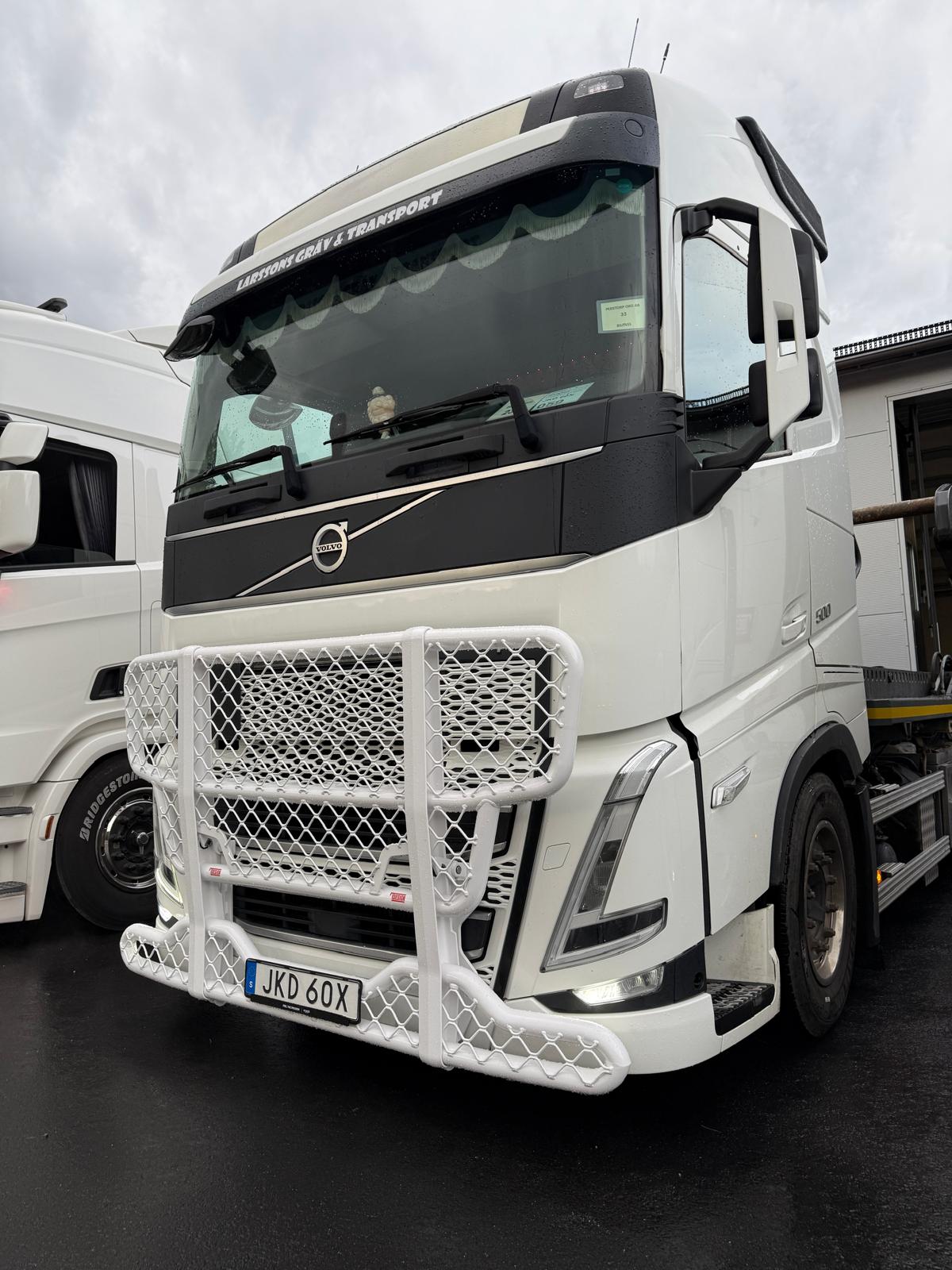 VOLVO AERO FH4/FH5 Frontskydd med Vingar Uppåt Ge din Volvo Aero FH4/FH5 ett grymt och funktionellt utseende med vårt frontskydd designat för att passa den senaste modellen. Med vingar som pekar uppåt får din lastbil en aggressiv och stilren look som utstrålar kraft och precision. Standardutrustat med 4 fasta extraljusfästen i mitten av frontskyddet, samt ett extra ljusfäste på varje vinge för maximal synlighet på vägen. Oavsett om du kör i mörka förhållanden eller vill sticka ut på vägen, ger denna lösning både ett imponerande utseende och praktisk funktion. Kombinera stil med prestanda och gör din Volvo Aero till en vägkung! (Godkänt intyg finns för frontskyddet)